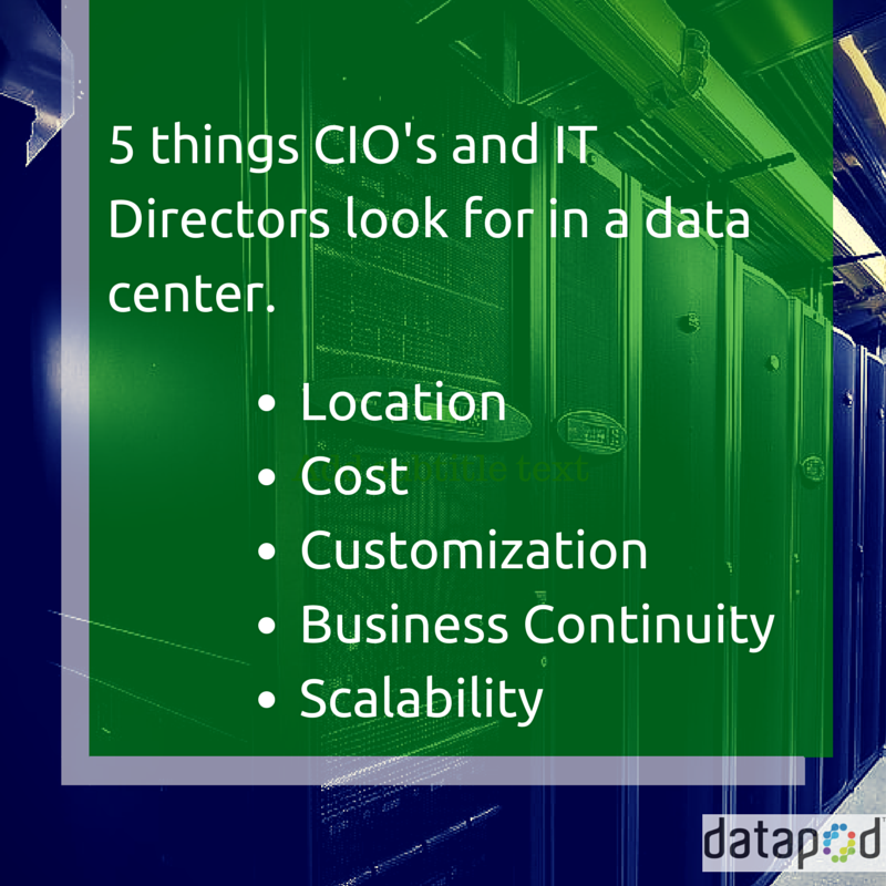 To understand how, let’s walk through the 5 things CIO’s consider when they look for a data center: