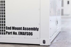 The Endmount Assembly is a 1⁄4 length ISO module that contains all external physical infrastructure. Endmount Assemblies will typically house the Fire Suppression systems (cylinders) and Entrypod house air-conditioning condenser, as well as a set of stairs leading to the roof area above the datahall for servicing of the roof-mounted condensers if required.